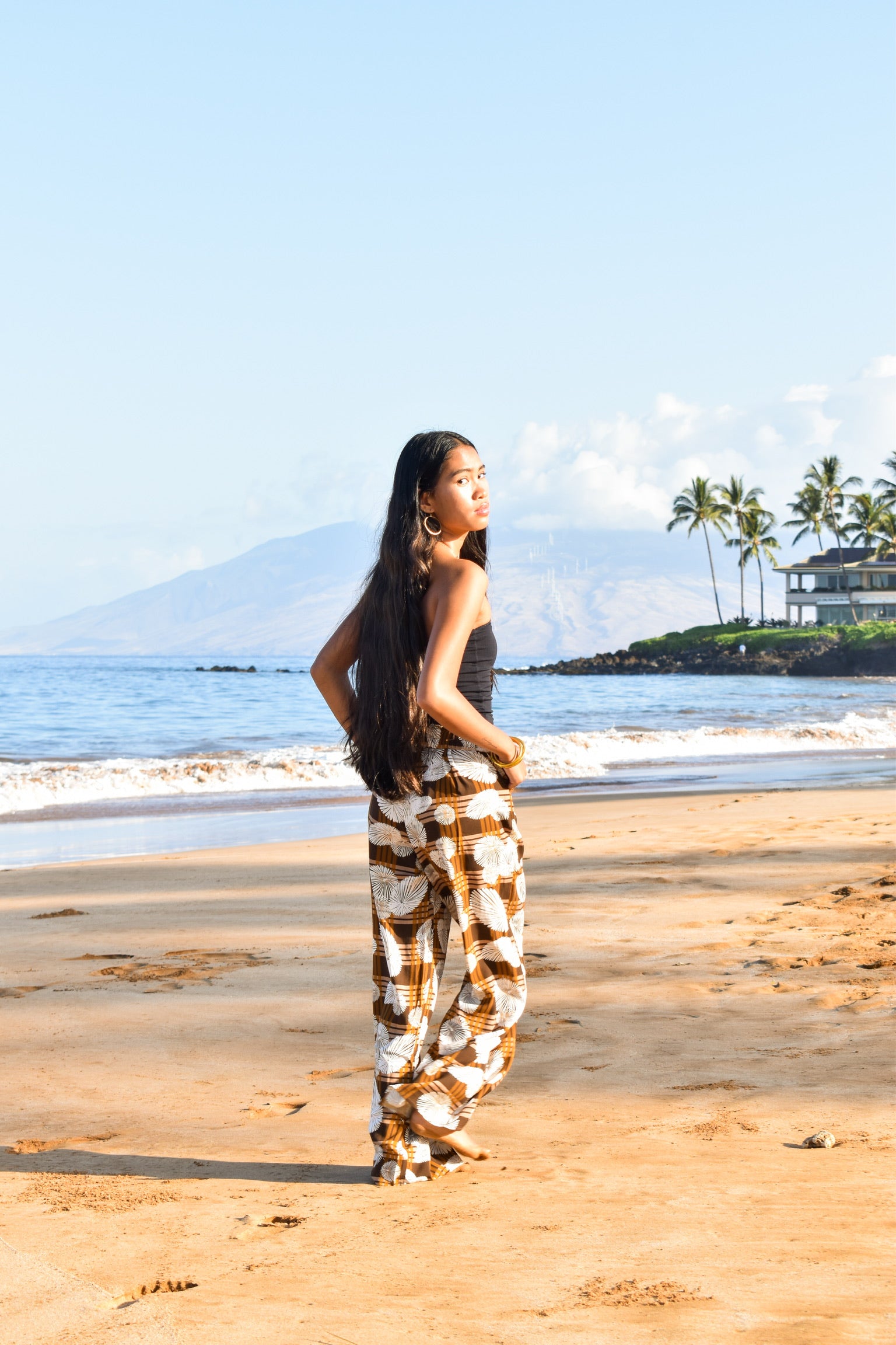Flow freely and stay grounded in our Wahine ‘Opihi Palazzo Pants. Inspired by the resilient ‘opihi that holds fast to Hawai‘i’s rocky shores, these wide-leg pants combine comfort and effortless style for the wahine who moves with grace.